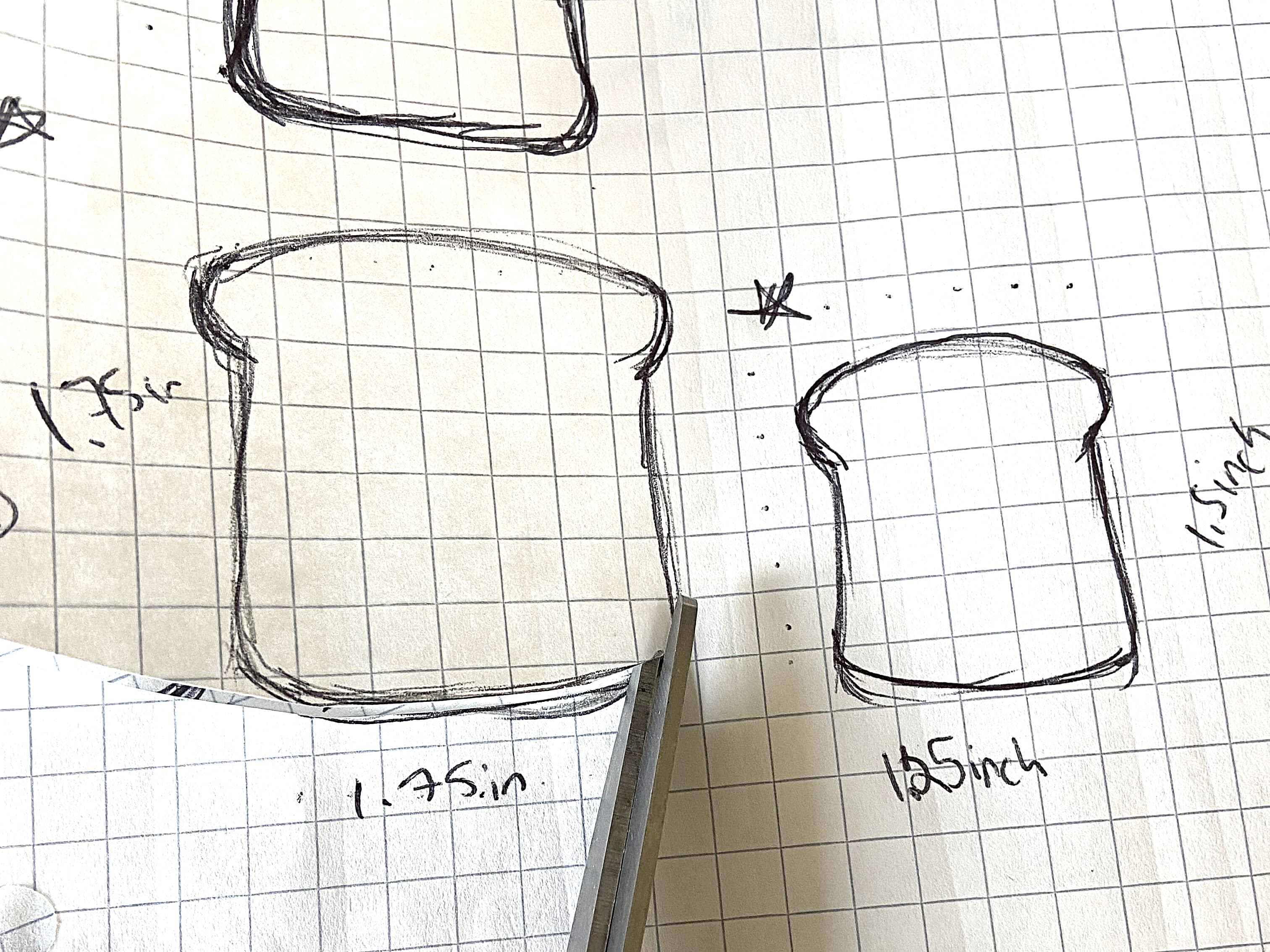 Let’s begin with making a stencil. Draw your toast shape in the size you want. For big utensils, I drew a toast shape about 1.75 inches by 1.75 inches. For small utensils like forks and spoons, I measured about 1.25 inches x 1.5 inches. Once done, pick your favorite ones and cut them out.